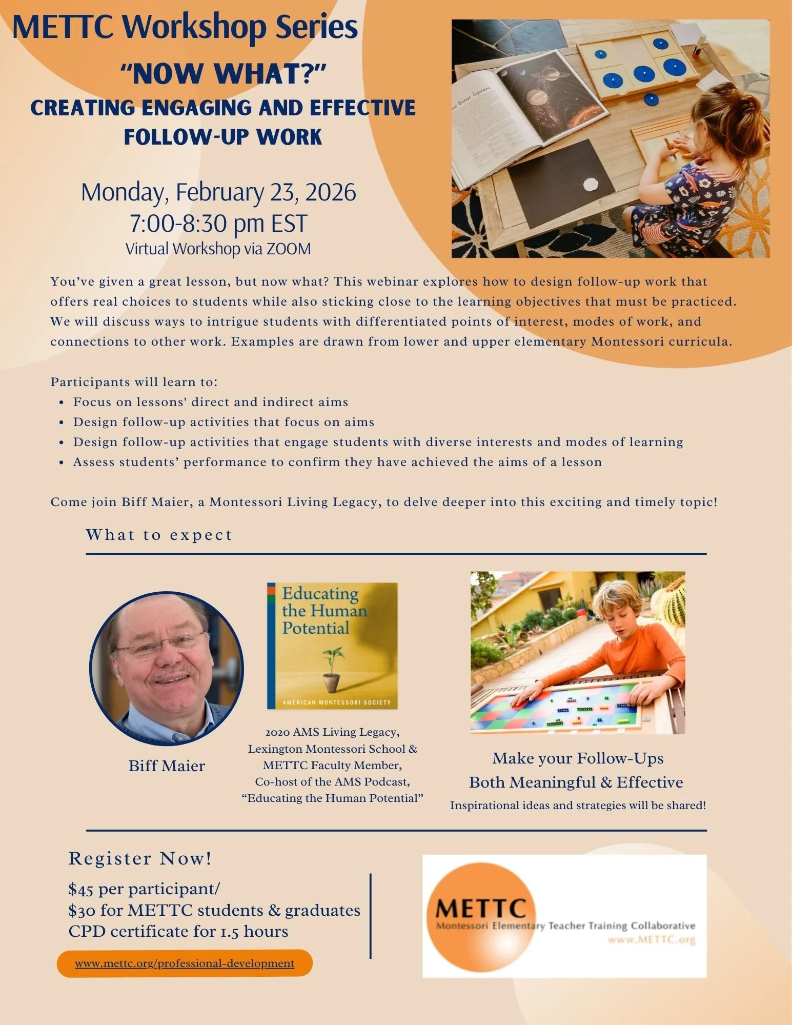 REGISTER for 1.5 hrs of Continuing Professional Development from the American Montessori Society.